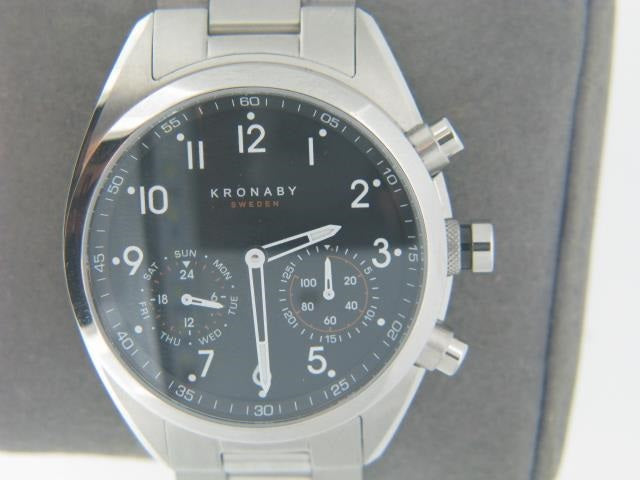 Kronaby Apex 43 Smart Watch Stainless Steel Black Dial Duel Time Zone 43Mm Case Sapphire Crystal. Stay connected to your technology without giving up the timeless look, connects to any Android and IOS Devices.