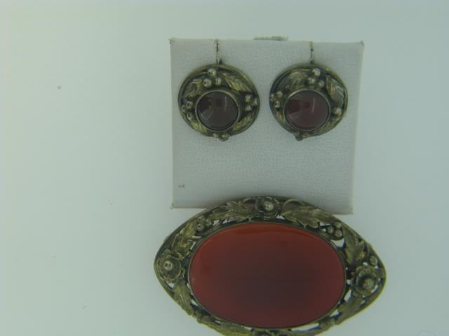 Victorian Vermeil Carnelian Suite Brooch And Earrings